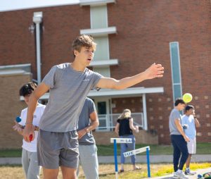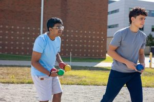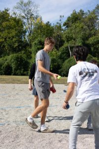 Ball in hand, Ira Rodrigues (12) aims her next toss. The objective of the French game “Pétanque” is to land one’s ball closer to the target ball, called the “cochonet,” than the opponent. It is commonly played at parks and public festivals across the globe. “I had fun playing against my classmates, and it was fun applying something we learned in class to real life,” Rodrigues said.