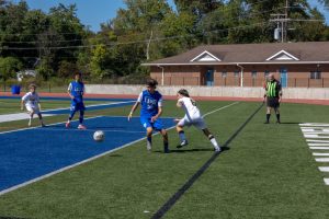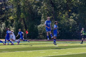 Boys JV soccer defeats strong competitor Vianney 4-1 on Sept. 27. It was 98 degrees throughout the duration of their game. “It was super hot and bright out, but the team stayed strong and kept our focus on winning,” Athan Gourtzelis (10) said.