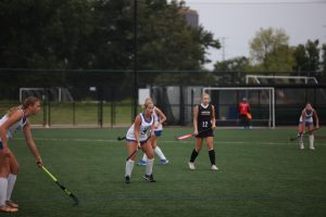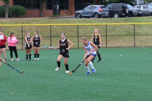 JV field hockey defeats Clayton 8-1, Sept. 5. The game was played on Clayton’s field 6:30 p.m. “This was such a great game because Clayton is our rival school and it feels good to win,” Abby Goldstein (11) said.