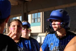 Girls Softball competes against Parkway North Oct. 1. This game resulted in a mercy rule with Ladue winning by 10. “It was a really fun game to compete in because our spirit was so high the whole time,” Lucy Dempsey (12) said.